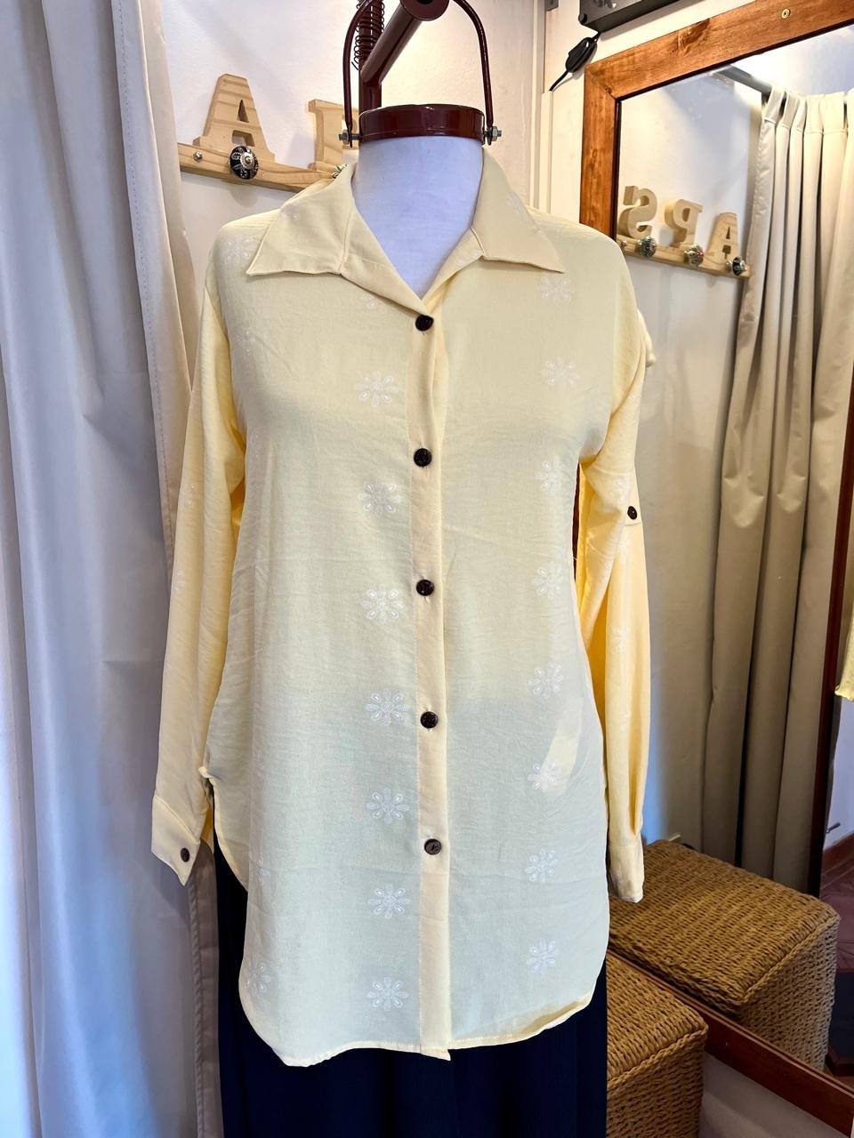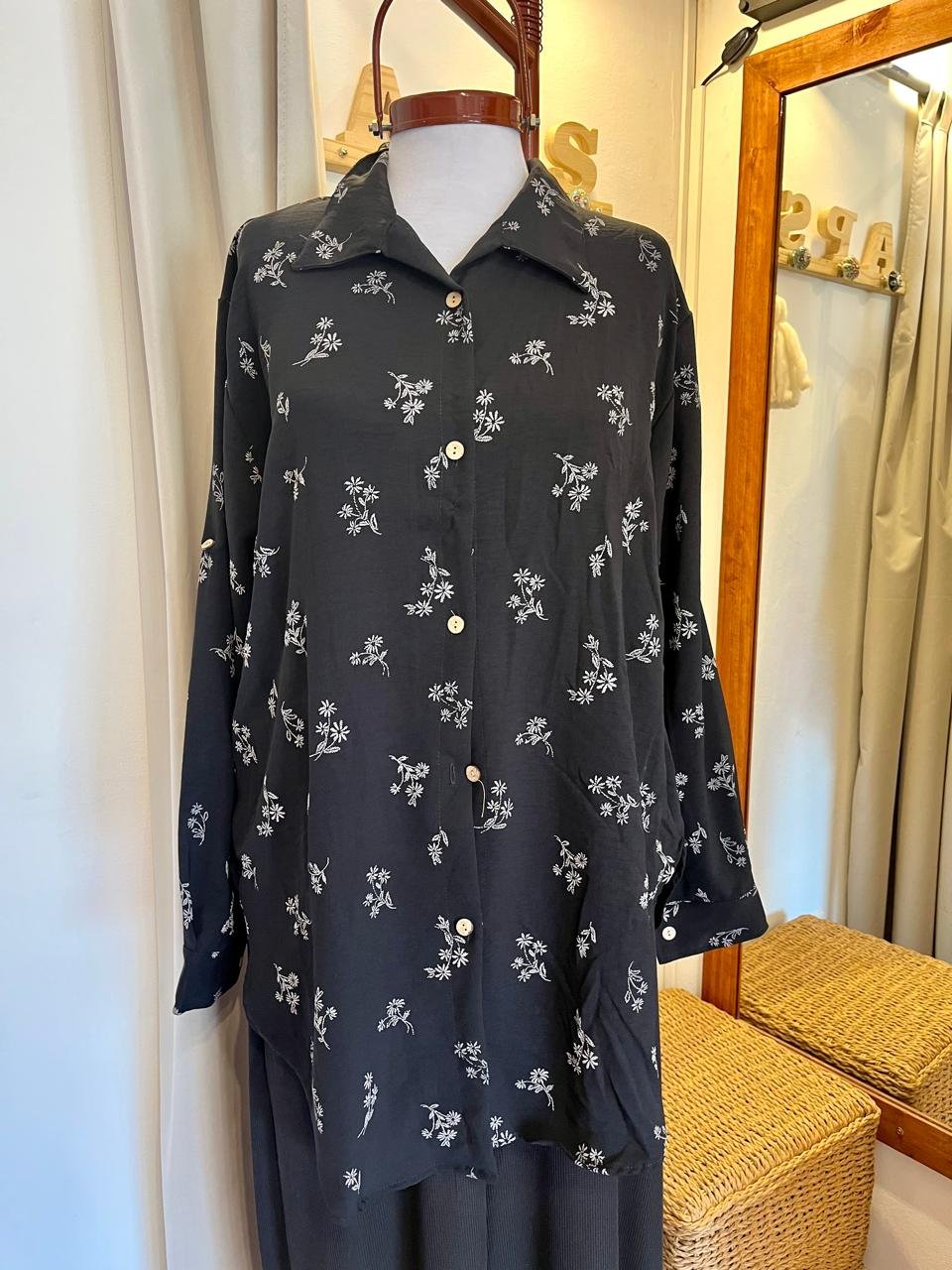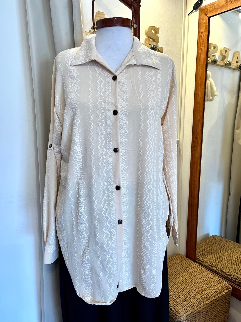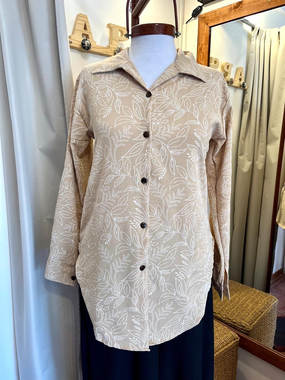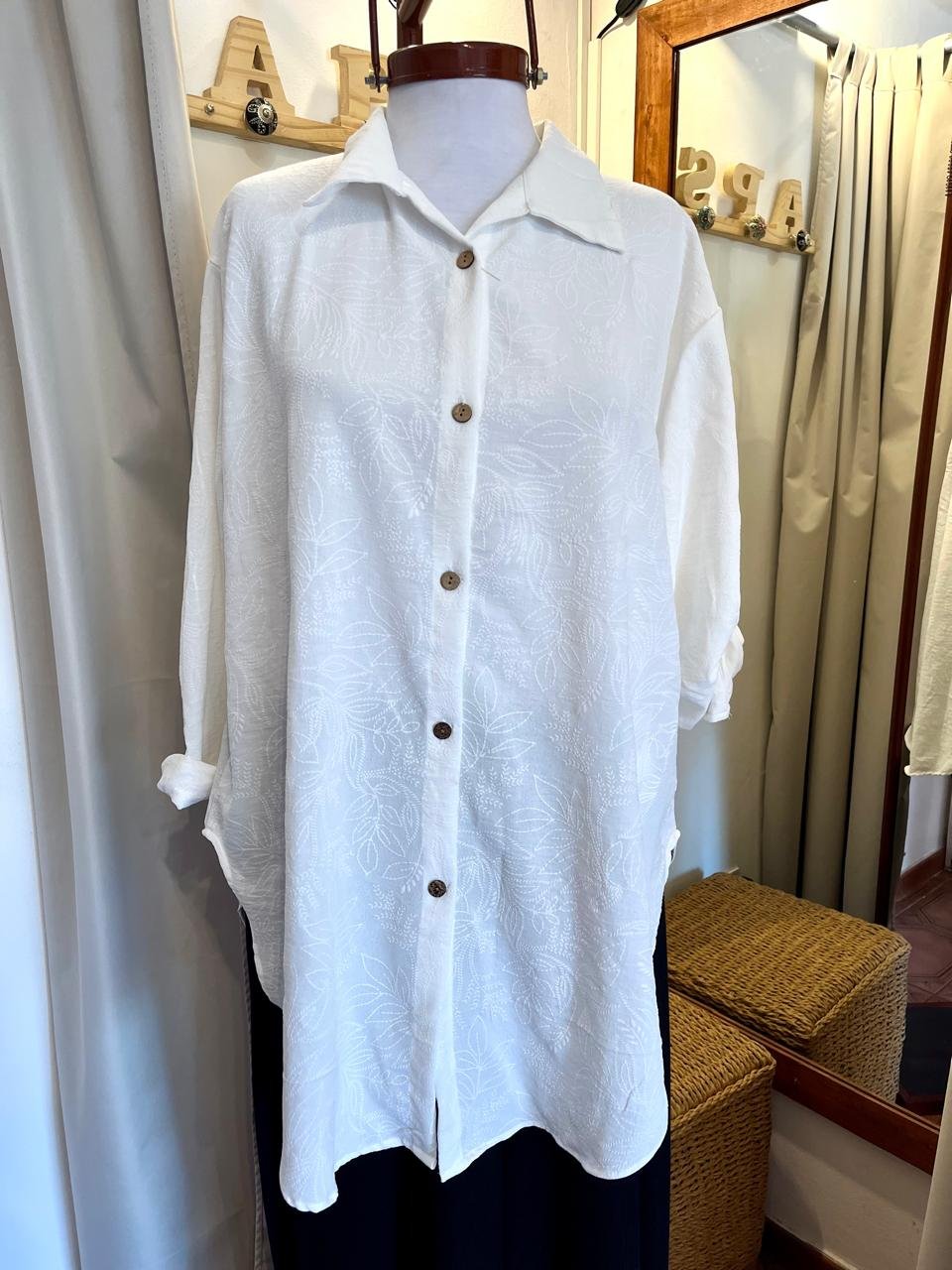 Maxi camisa realizada en tela Cey estampada elastizada. Doble rebote lo que hace que tenga una caída increíble y se adapte perfectamente al cuerpo.