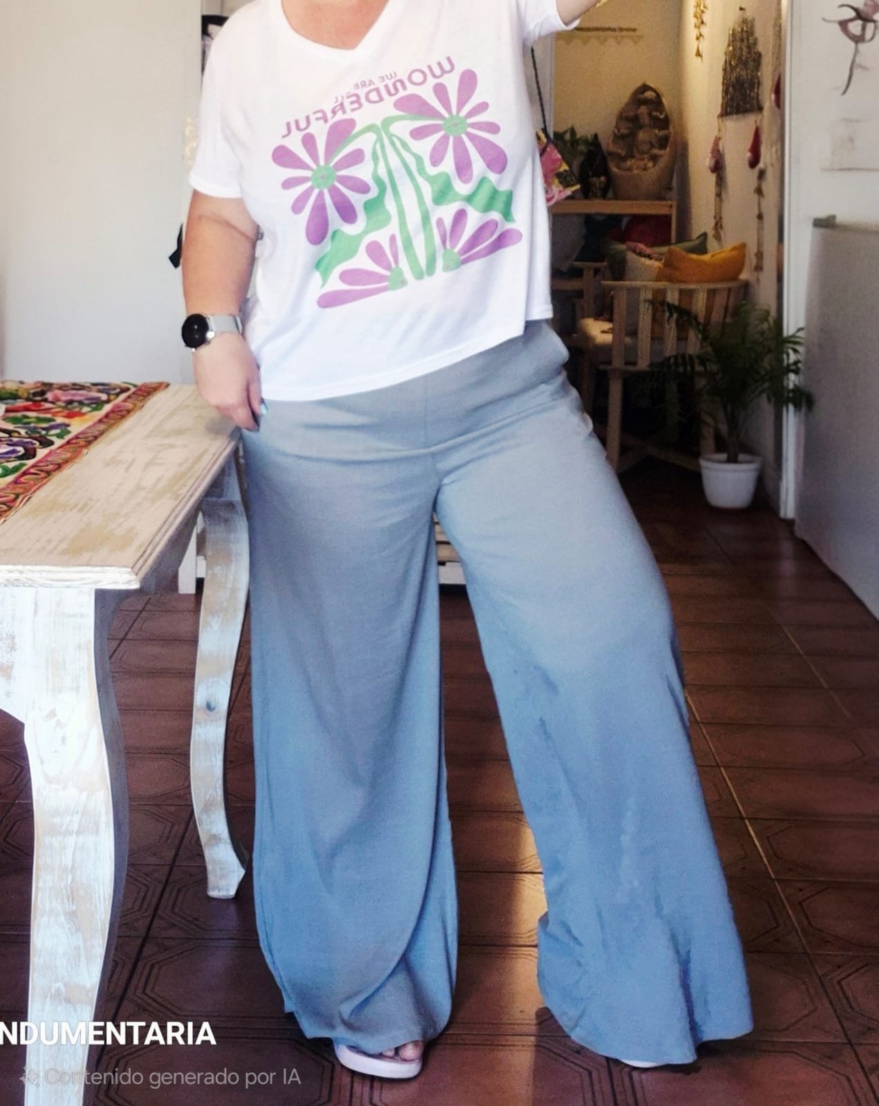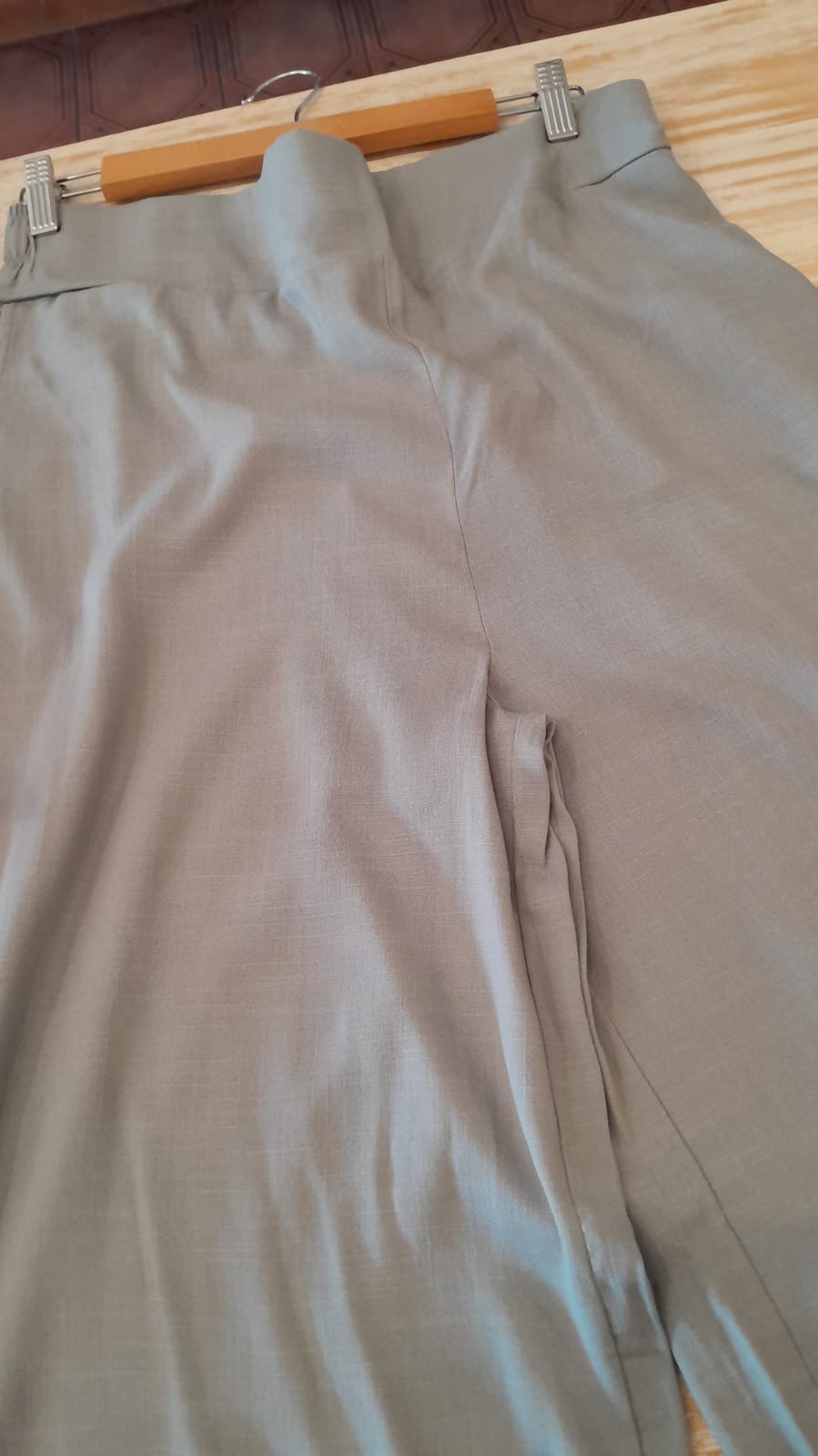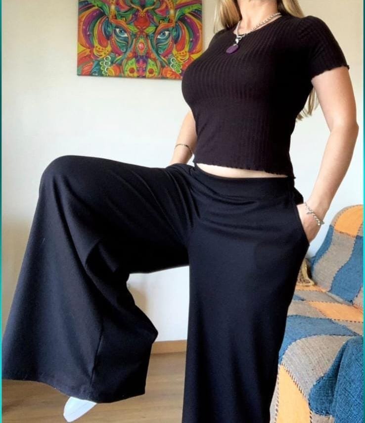Pantalón en lino, tipo palazzo: cintura ancha, elastizada en la parte posterior.