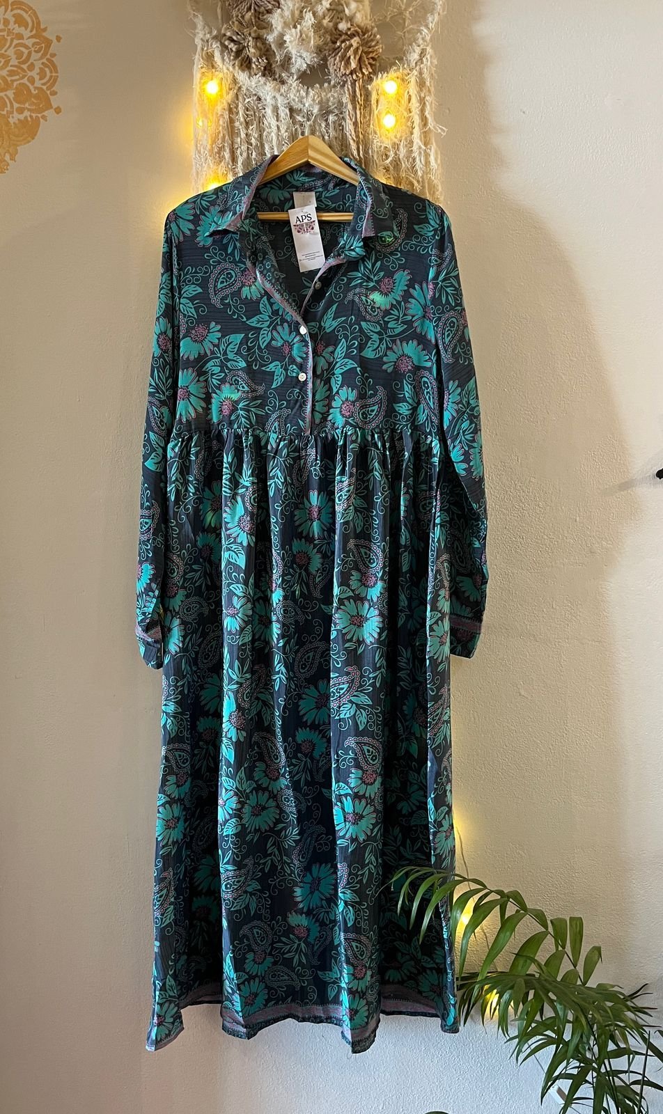 Vestido camisero largo en seda